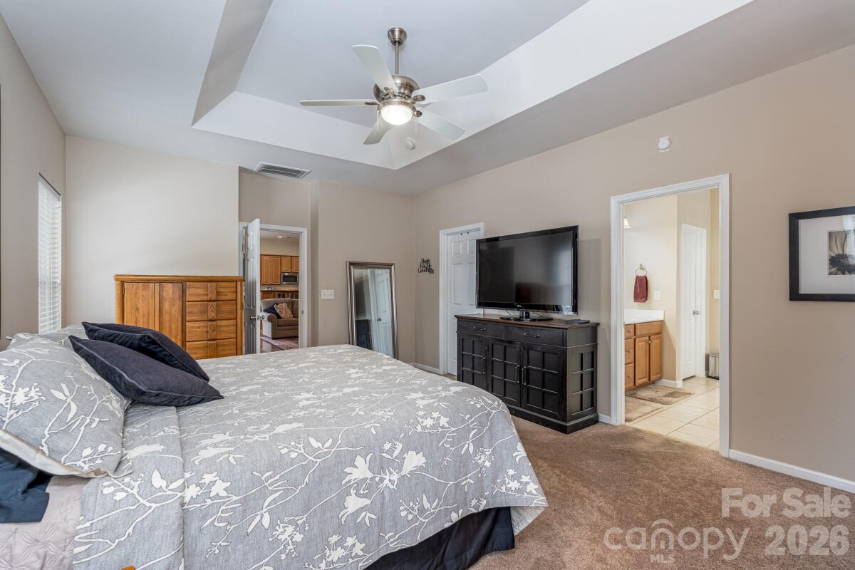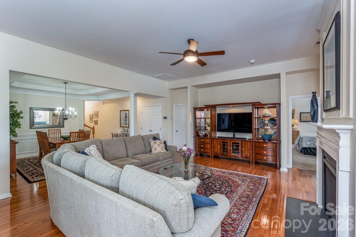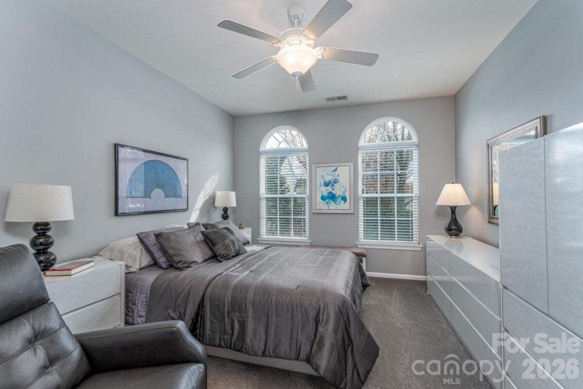 Rare opportunities with this kind of location don’t come around often. Tucked at the end of a premium cul-de-sac in Ballantyne’s coveted Ballanmoor community, this move-in-ready ranch offers a walkable lifestyle most buyers are still searching for. Top-rated schools, Ardrey Kell, Community House and Knights View are all within walking distance. Shopping areas like Blakeney, Ballantyne and Ballantyne Bowl, Stonecrest and Waverly are all within 5 minutes away. Everyday conveniences are all just steps away. Inside, hardwood floors and natural light anchor an open, easy-flowing layout. The family room and sunroom share a double-sided fireplace giving you and your family that warm and comfy feeling regardless of what room you choose. The kitchen is both inviting and functional with 42†cabinetry, granite countertops, stainless appliances, and a gas range. The main-level primary suite feels like a true retreat with a tray ceiling, spa-style bath, dual vanities, glass-enclosed shower, garden tub, and two walk-in closets. Two additional bedrooms and a French-door office complete the main floor, while a private upstairs Bonus/Flex room with closet and full bath adds valuable flexibility for family members or guests. Outdoor living is just as inviting with a deck and expansive patio overlooking a manicured private backyard. A cul-de-sac lot, rare ranch layout, bonus space, and unbeatable location make this one you don’t want to miss.