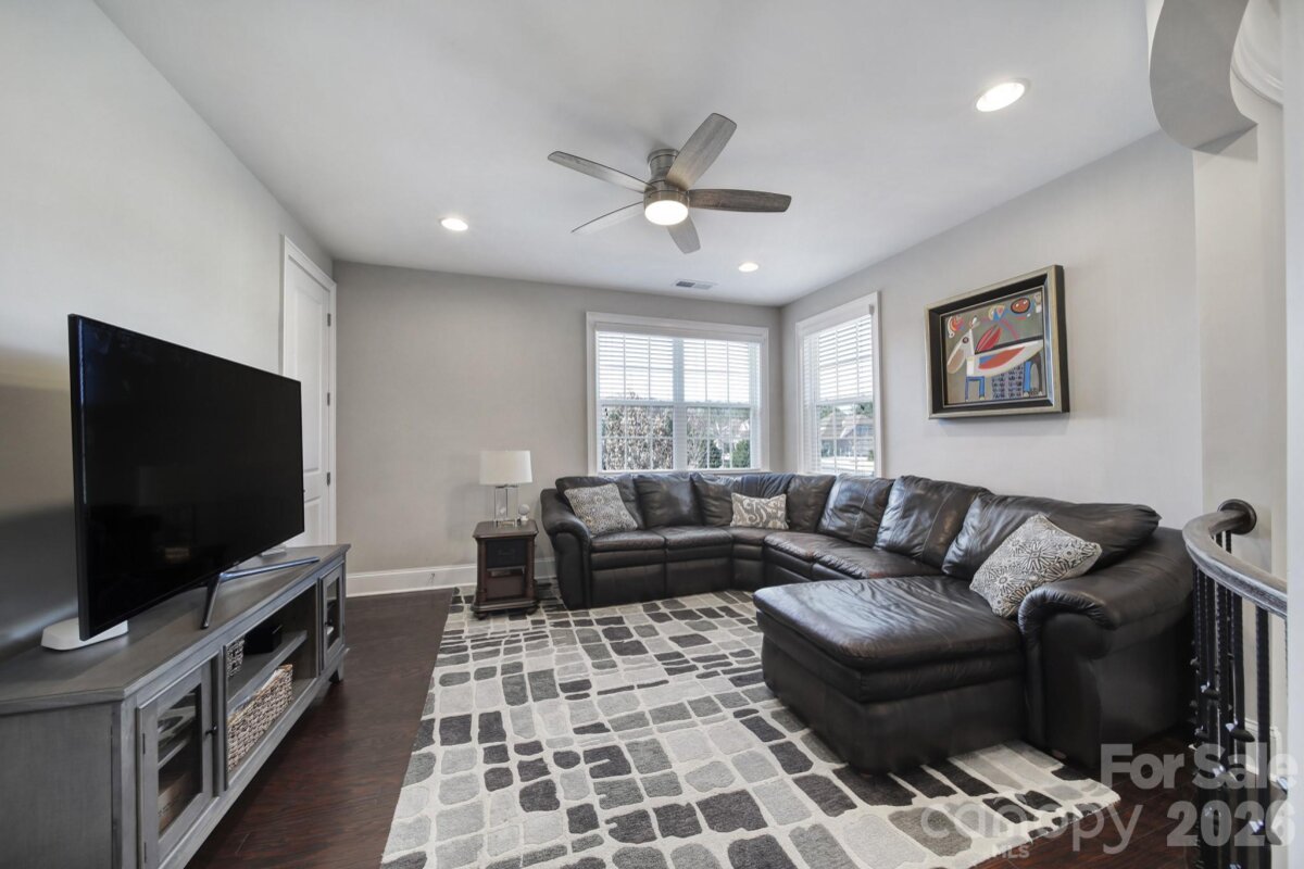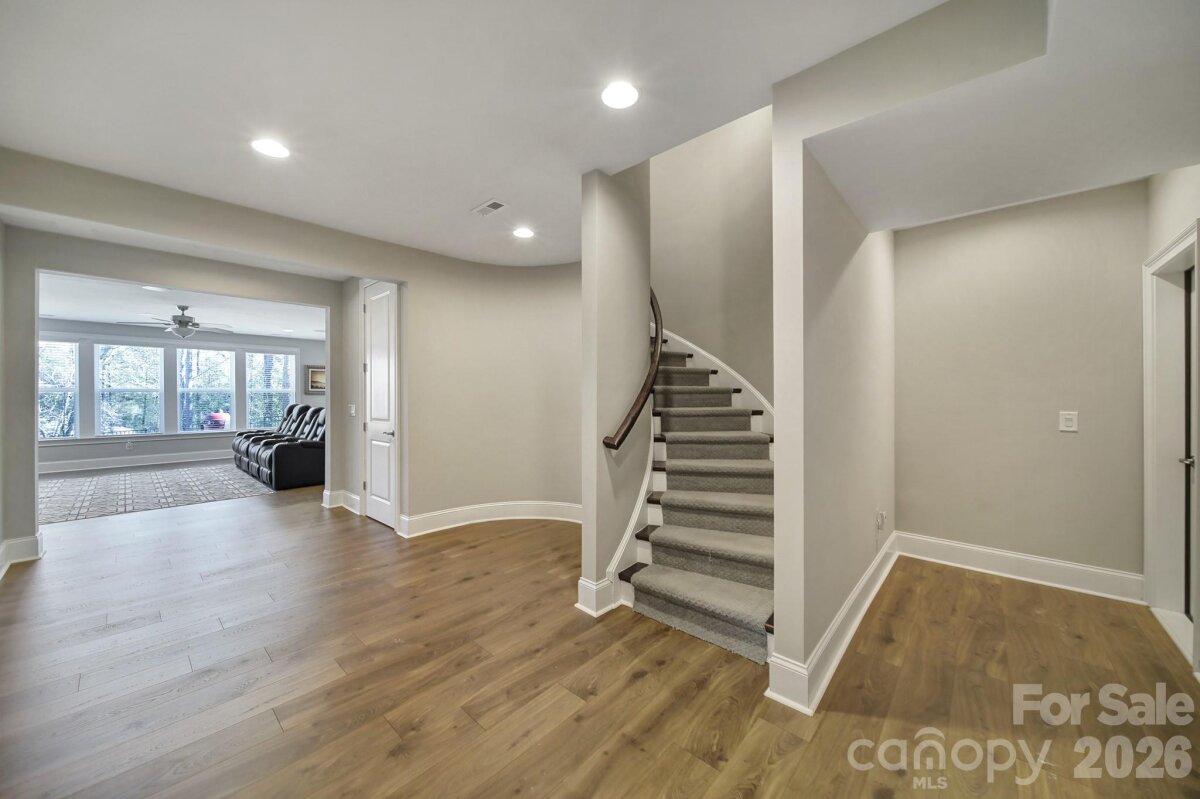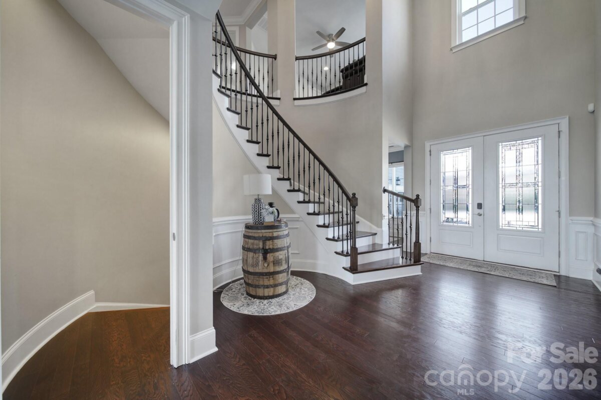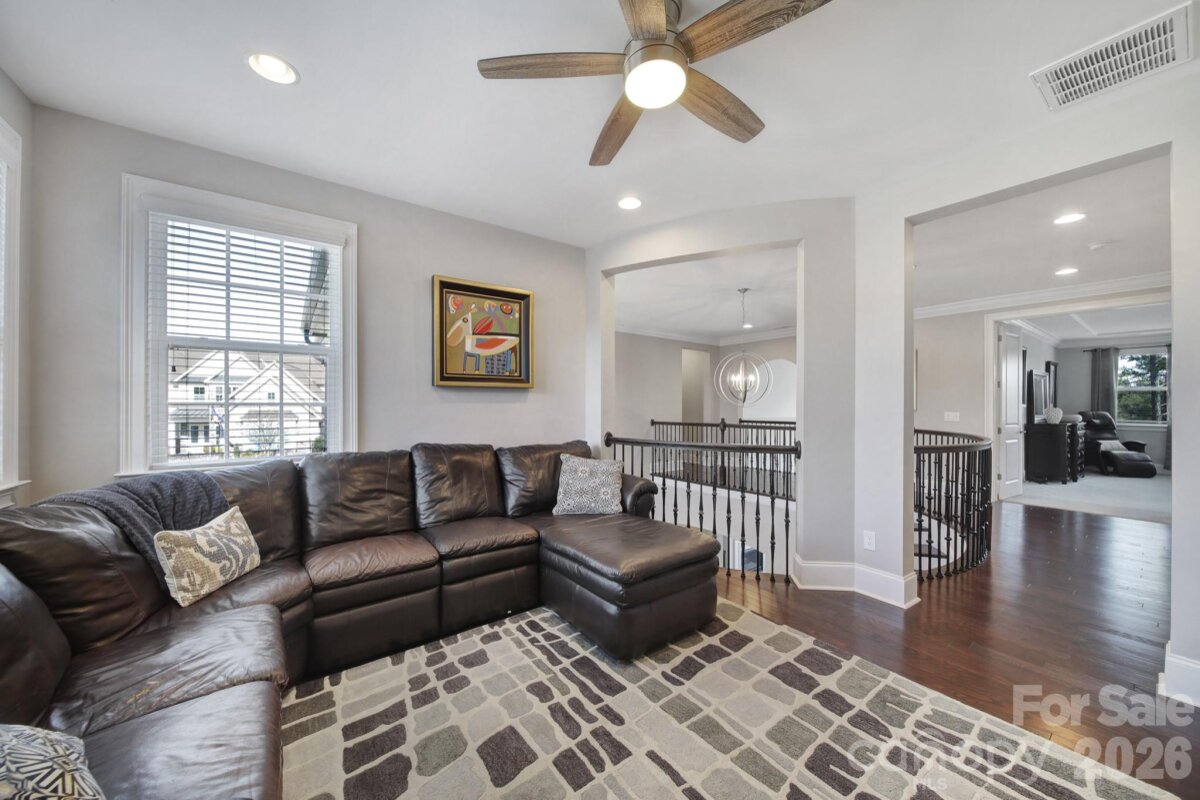 Luxury home with a finished walkout basement in the gated Montage section of the highly sought-after Palisades, offering water and golf course views. Two-story foyer opens to a spacious floor plan featuring a great room with a gas fireplace, built-in shelving, and abundant natural light. Gourmet kitchen includes quartz countertops, a gas range, wall oven, oversized island with seating, walk-in pantry with custom shelving, breakfast area, and a butler’s pantry connecting to the formal dining room. Main level has a private office with French doors and a guest suite with full bath. Upstairs primary suite offers two walk-in closets and a spa-like bath with dual vanities, a soaking tub, and a large walk-in shower. Upper level also includes a loft with storage, a laundry room with cabinets and a sink, three secondary bedrooms, and two full baths. Finished walkout basement with new LVP flooring is ideal for multigenerational living with a full kitchen, dining area, rec room, bedroom, full bath, storage, and washer/dryer. Screened-in porches on main and basement levels. Three-car attached garage. Resort-style amenities include a pool, clubhouse with fitness center and kitchen, playground, pickleball and basketball courts. Golf and tennis/social memberships are available at The Palisades Country Club.