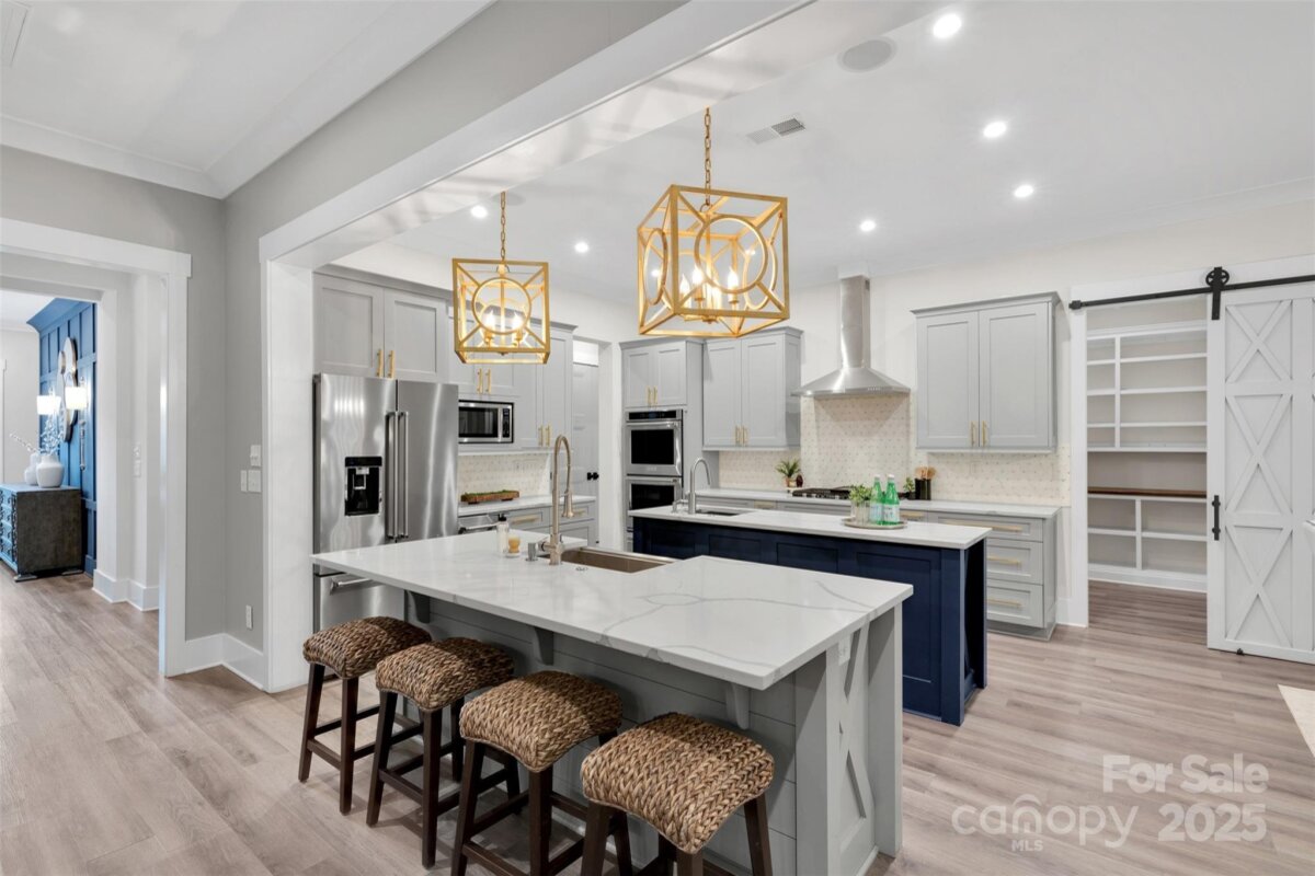 Stunning 2020 custom-built home located in The Palisades. This craftsman-style residence offers 5 bedrooms, 3.5 baths, and an open, functional floor plan designed with exceptional attention to detail and is sure to impress even the most discerning buyer. The gourmet kitchen is every chef or entertainer's dream with dual islands, stainless farmhouse sinks, quartzite countertops, marble backsplash, brushed gold accents, high-end KitchenAid appliances and has a large walk in pantry complete with custom shelving, drawers and butcher block top. Cozy up in the spacious great room with custom built-ins and a stone gas fireplace, while the massive 15-foot slider doors seamlessly extend the living space to the outdoor porch with EZ-View panels. Step outside to enjoy views of the 4th hole from the covered paver patio, fully fenced backyard w/ irrigation and a complete outdoor kitchen equipped with a Coyote grill, sink, refrigerator, and ice holder ideal for gatherings year-round. The main-level primary suite provides a luxurious retreat with access to the porch, dual closets w/ custom shelving and a spa like bathroom featuring a nearly 16-foot wet room, dual vanities, custom mirrors and elegant tile accent wall. A versatile second bedroom on the main level has been used as a home office. Upstairs you'll find 3 generously sized bedrooms, 2 bath rooms and a large bonus room with 383ft of walk-in storage. The 3 car garage offers plenty of space and storage and also features a built-in dog wash w/pet door and access to backyard. The updates in this home are just too many to list. Be sure to ask for the complete list of upgrades. Living in The Palisades means more than just enjoying it's resort-style amenities which include a Jack Nicklaus-designed golf course, a resort-style pool with splash park, fitness center, private Country Club, an Equestrian Center, Residents Club, and miles of scenic trails, it's embracing a whole new lifestyle.