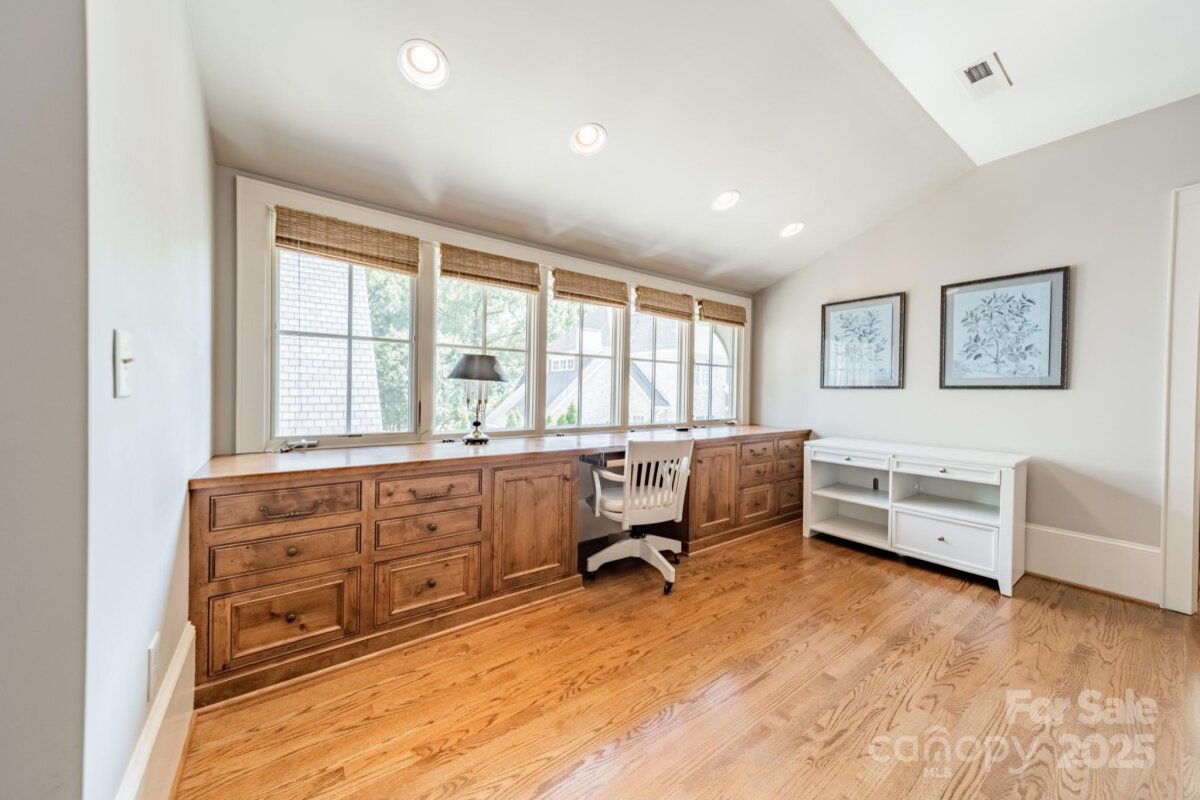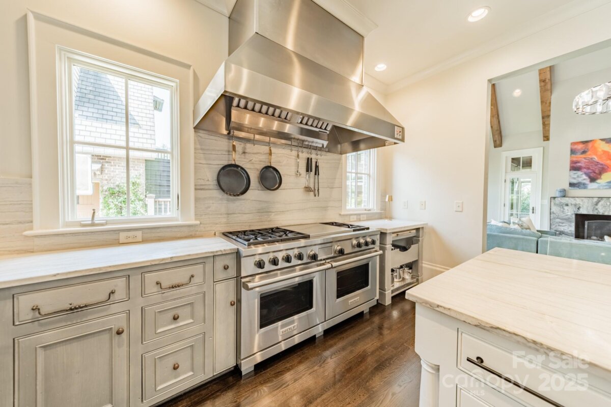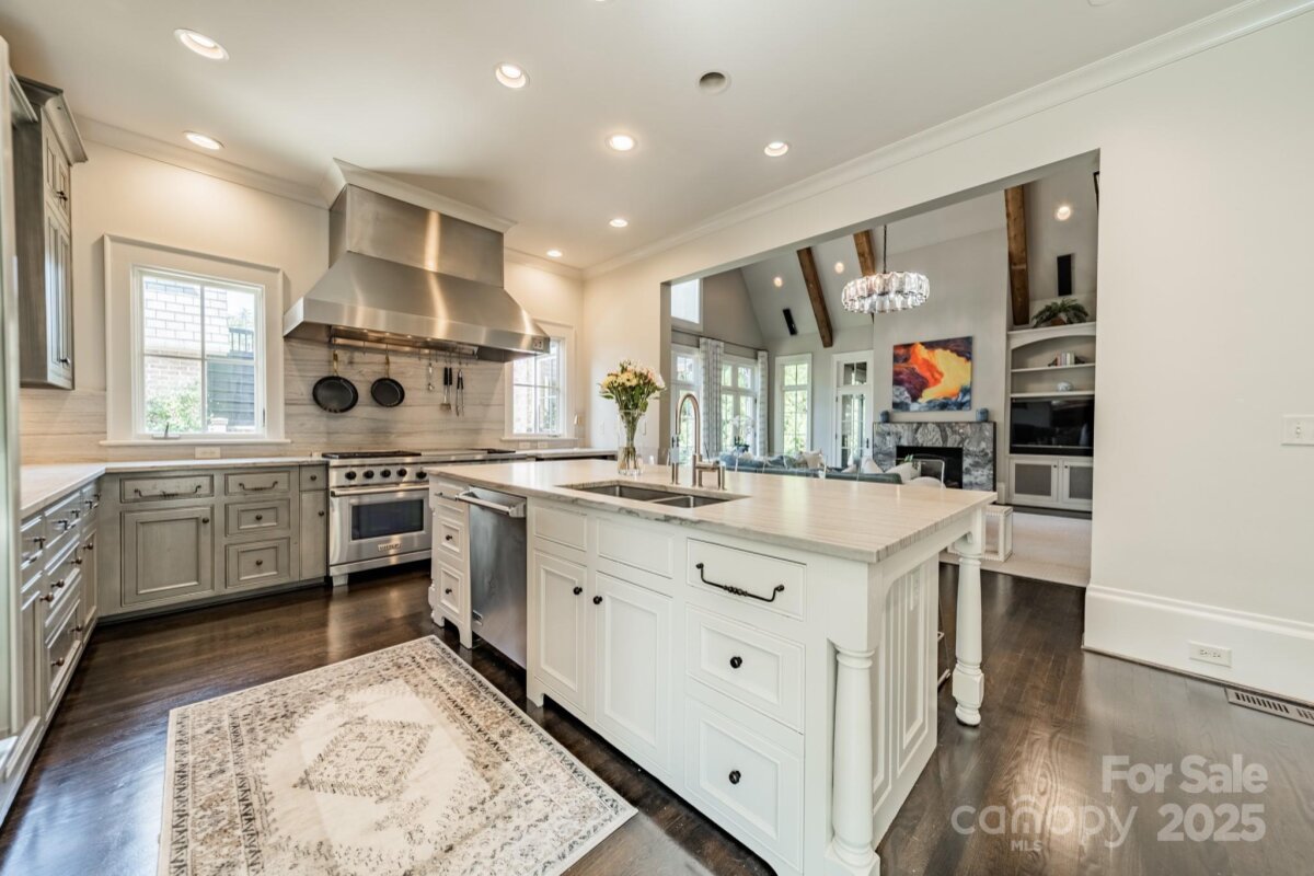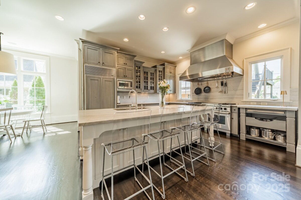 Beautiful, stately home situated on one of Charlotte's most desirable streets. This home blends timeless elegance with modern comforts, perfect for both entertaining and everyday living. Step through the expansive foyer with a curved staircase into the formal living and dining rooms, setting the stage for gracious gatherings. The soaring 2 story great room with cedar beams seamlessly opens to the true chef's kitchen, a showpiece designed for culinary enthusiasts and social connections.With top of the line appliances, an expansive island , abundant counter space, and walk in pantry, it combines style with function. The primary suite serves as a serene retreat, offering a spacious layout and spa like bath. Four additional bedrooms on the second floor. Gorgeous finishes, abundant natural light, 8" solid Alder doors and custom millworker throughout . Additional highlights include a screened porch, a quiet, private patio, 700 bottle wine cellar, and second living quarters with full bedroom and bath, ideal for an au pair, home office, or guest accommodations. Enjoy walking distance to Freedom Park and the vibrant shops and restaurants along East Blvd. This home offers the rare combination of sophistication, comfort, and unbeatable location!