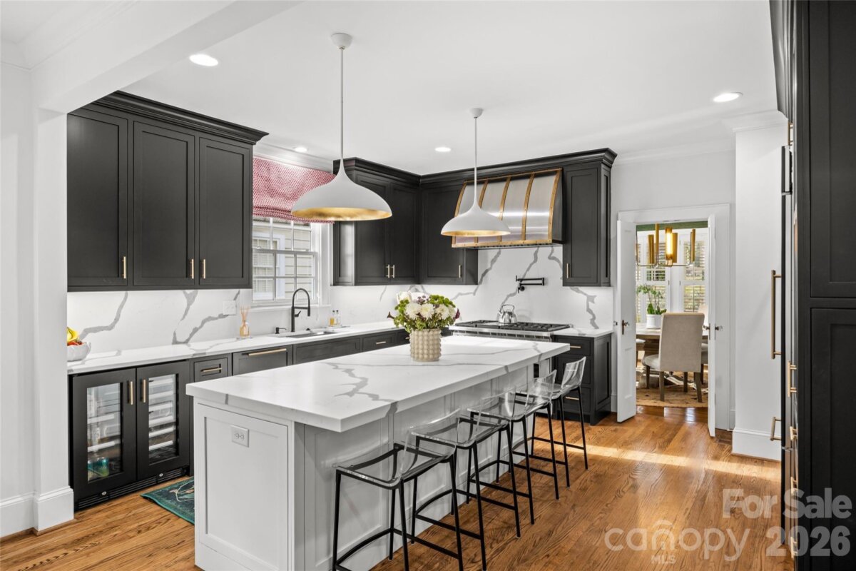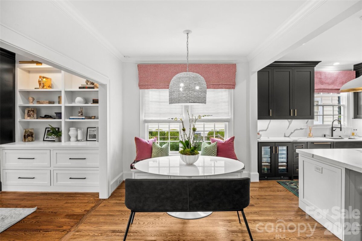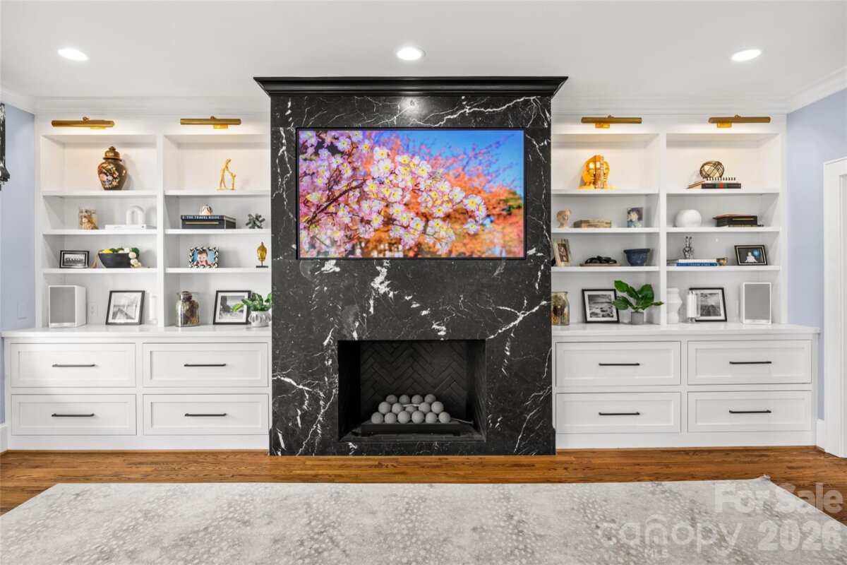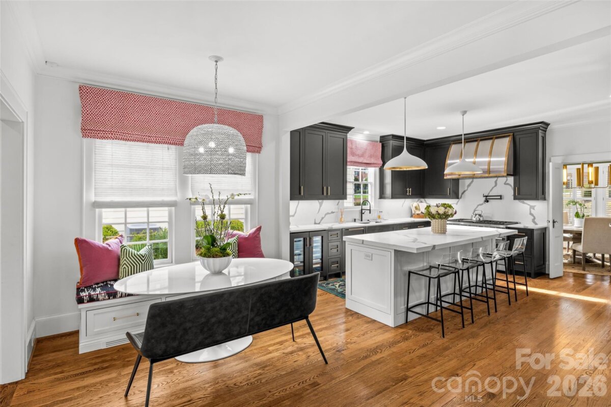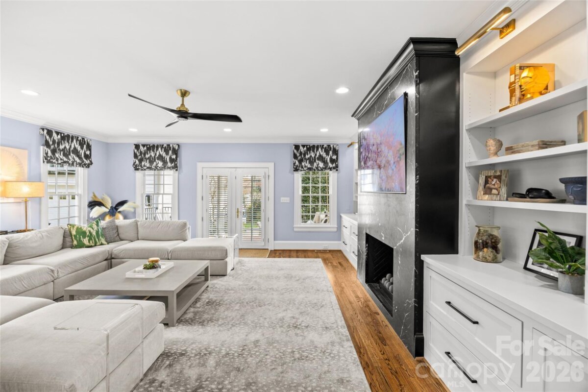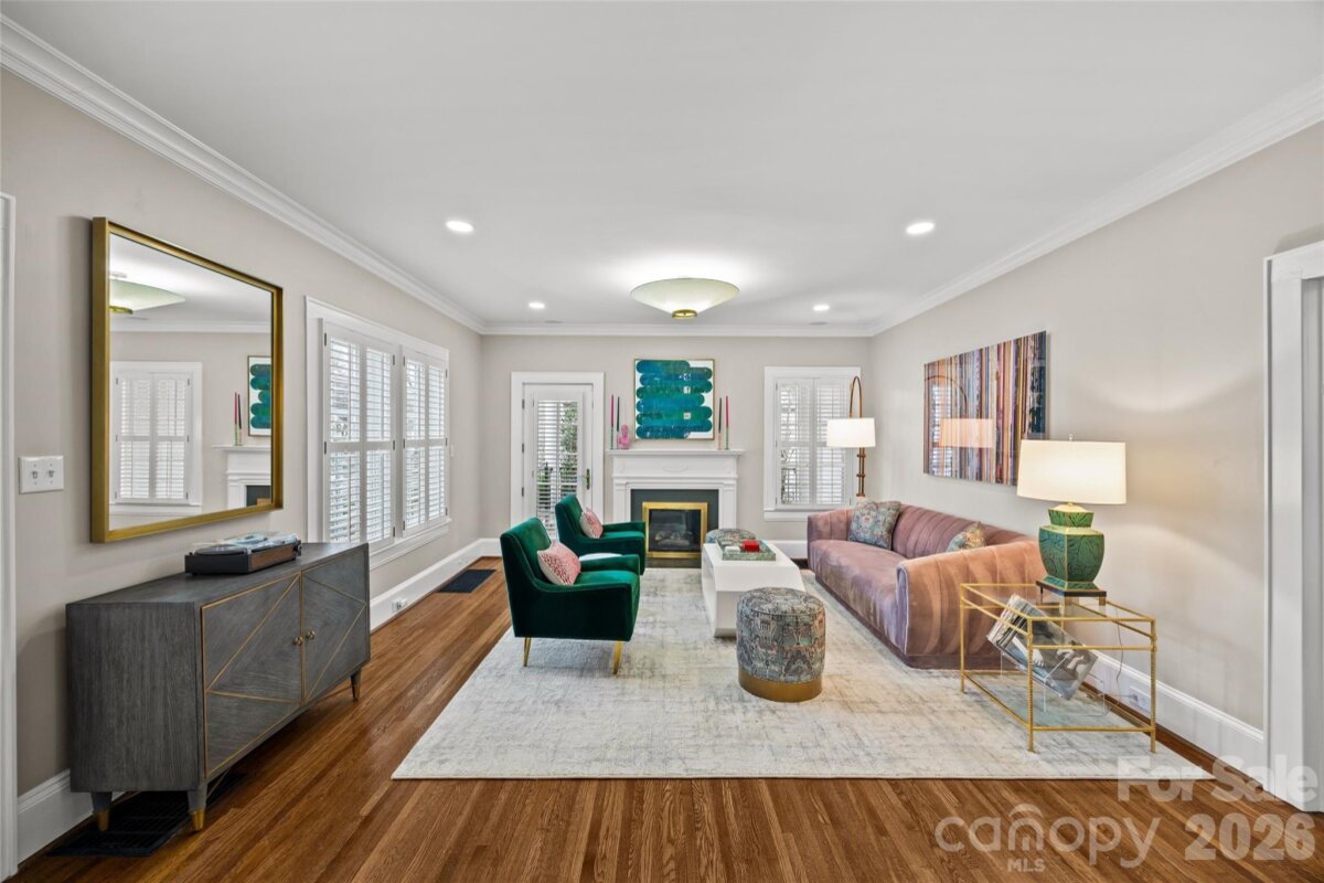 LUXURY LIVING IN MYERS PARK! This spectacular residence exudes timeless elegance. Thoughtfully designed for effortless entertaining and comfortable everyday living, the home showcases exceptional craftsmanship and high-end finishes throughout. The main level features a spacious living room with fireplace and an elegant dining room ideal for gatherings. A show-stopping chef’s kitchen opens seamlessly to a fireside family room and a bright, sun-filled breakfast area, creating the perfect heart of the home. A convenient side entry with drop zone and built-ins adds everyday functionality. Upstairs, the primary suite offers a serene retreat with a beautifully appointed ensuite bath featuring dual vanities, soaking tub, walk-in shower, and two generous walk-in closets. Three additional bedrooms and a large laundry room complete the upper level. Above the detached two-car garage, a private guest suite or bonus room with full bath provides flexible space for guests, a home office, or recreation. Outdoor living is equally inviting with a patio and fireplace overlooking the private backyard with mature landscaping ideal for relaxing or entertaining year-round. Ideally located just moments from the shops, restaurants, and amenities of the Myers Park area.