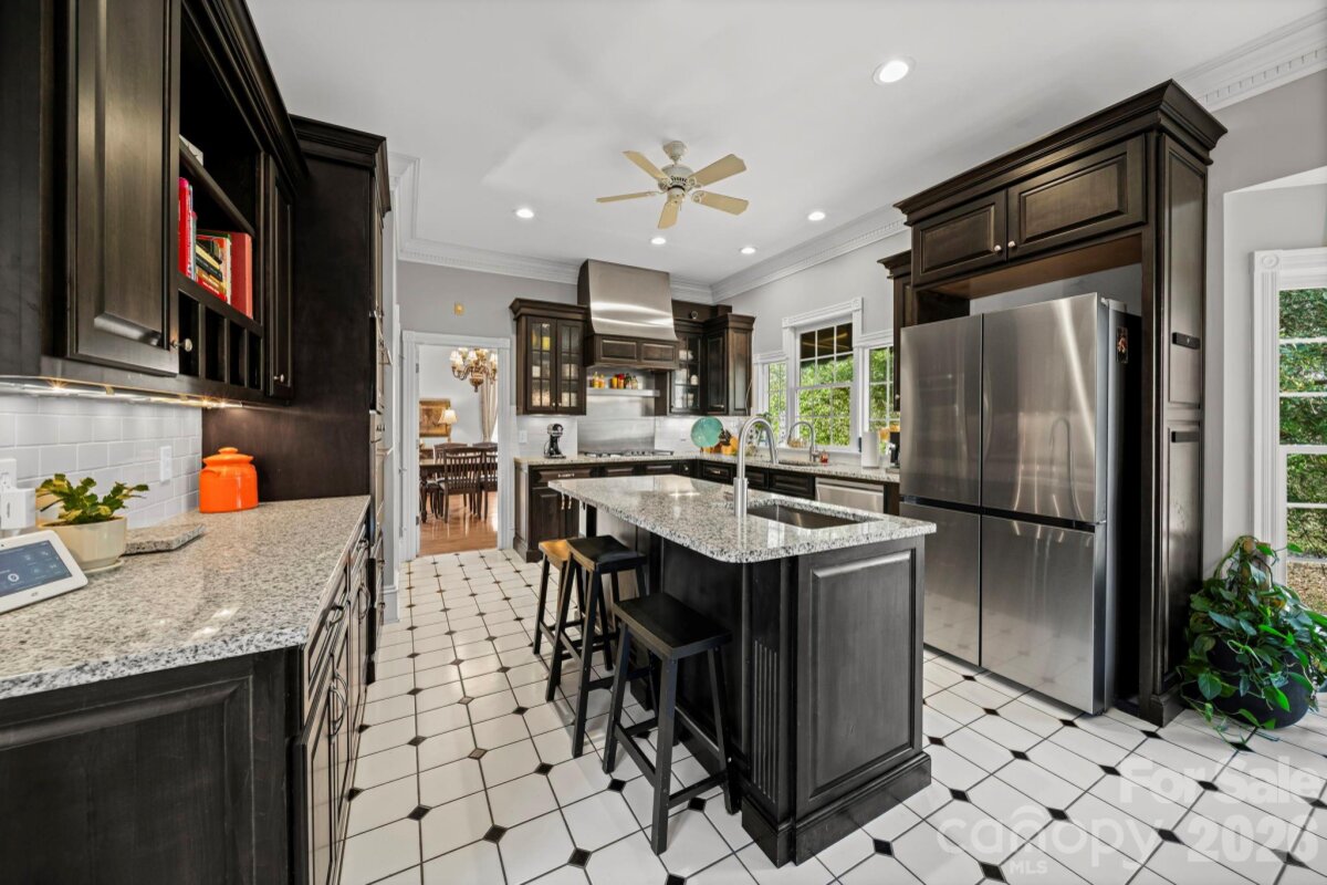 Elegant country estate offering 4 bedrooms, 3.5 baths on 1.65 acres, surrounded by a larger parcel with up to 11 additional acres available for purchase from the adjoining property owner—an exceptional opportunity for privacy and expansion. The spacious main-level primary suite features a private fireplace, oversized bath, and expansive walk-in closet. Rich architectural details continue with a custom library with built-in cabinetry and fireplace, and a formal dining room with fireplace, creating refined yet inviting living spaces. The kitchen is well appointed with a gas cooktop, wall oven, microwave, breakfast area, walk-in pantry, additional prep sink, and ample storage, opening to a dramatic two-story living room with fireplace and wet bar. Upstairs offers three additional bedrooms, including one with a private en-suite bath, plus a large bonus room with bar area, ideal for entertaining or recreation. The home provides abundant storage throughout. Outdoor amenities include a fire pit, pool house, and a former pool area that has been filled in, along with a detached two-car garage and detached carport. A new roof installed in 2021 adds peace of mind. A rare blend of timeless elegance, generous living space, and acreage potential in a private country setting.